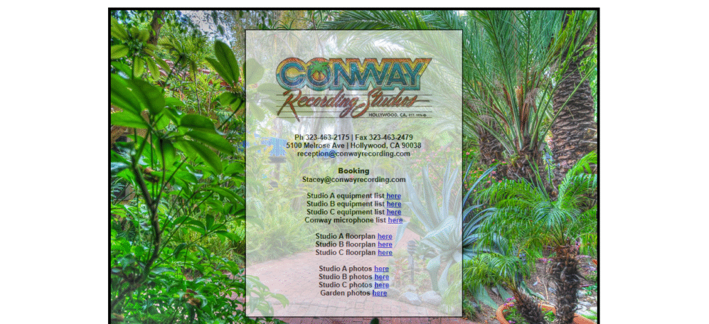 Conway Recording Studios is a professional recording studio located in Los Angeles, CA, known for high-quality sessions across multiple genres.