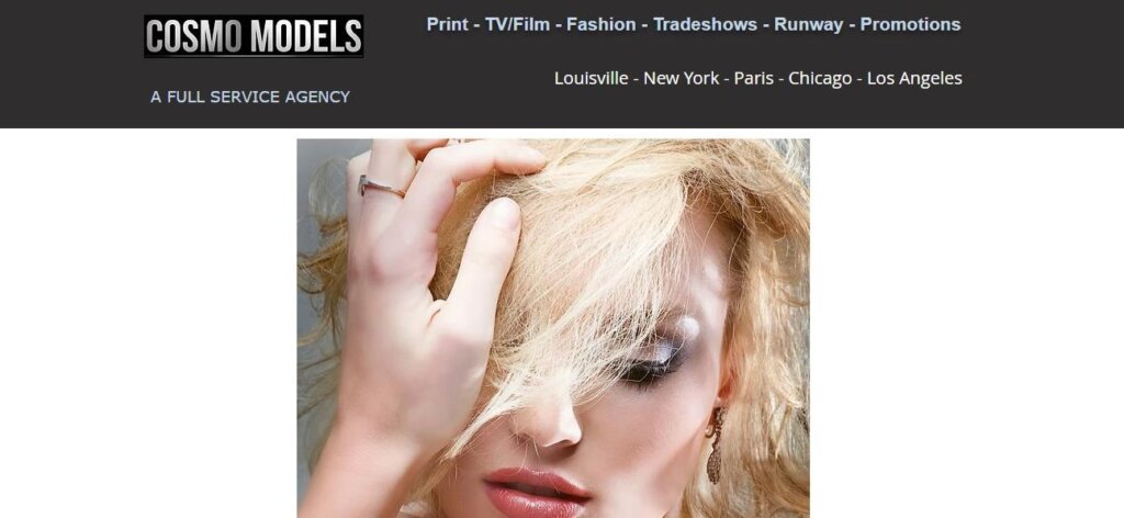 A full-service modeling and talent agency in Louisville representing print, TV/film, fashion, trade shows, runway, and promotional talent. Operates in multiple major cities including NY, Paris, Chicago, and Los Angeles.