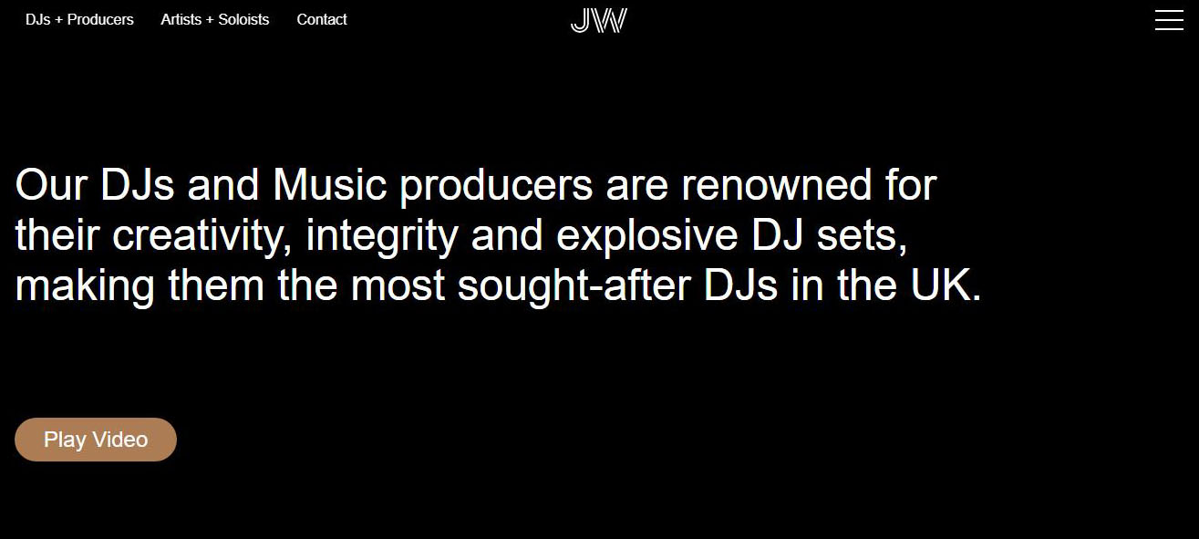 JW DJ Agency in London manages a dynamic team of more than 50 DJs and music producers renowned for creativity and explosive sets; their DJs come from diverse backgrounds and provide high‑energy performances for bars, clubs and events