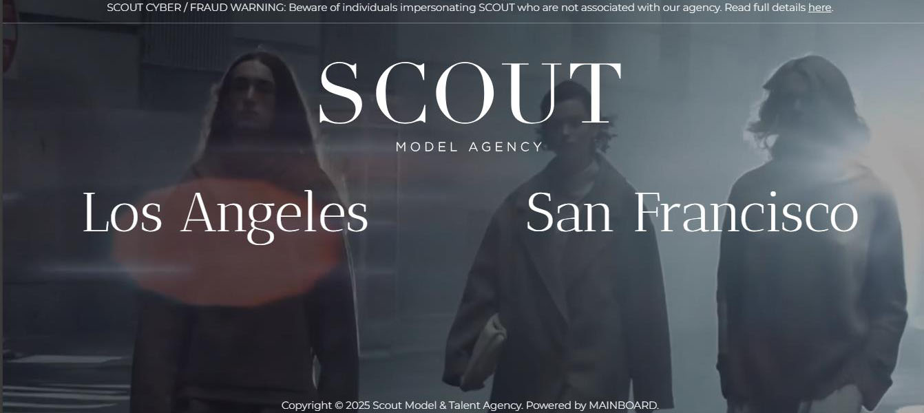 Scout Model & Talent Agency is dedicated to representing models and talent with integrity and warns prospective talent about impersonators; it operates from San Francisco’s SoMA district
