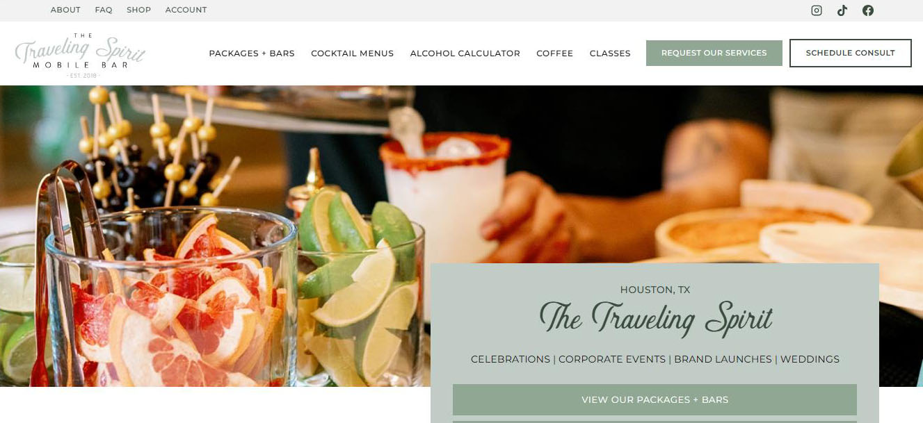 Houston‑based mobile bar centered on a restored 1959 vintage camper and additional bar carts. Fully insured and focused on signature craft cocktails with seasonal ingredients, offering menu planning, staffing, and all equipment for a turnkey event bar.